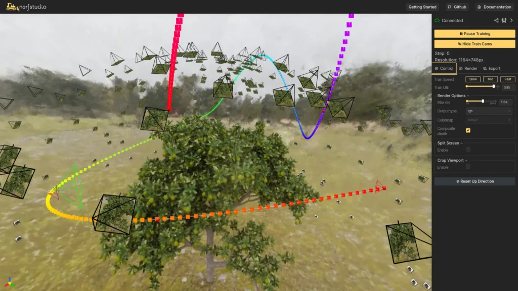 The synthetic FruitNeRF data used in this demonstration provides an excellent starting point for learning NerfStudio. For comprehensive guidance on processing your own custom data with various capture methods and devices, refer to the official NerfStudio documentation.