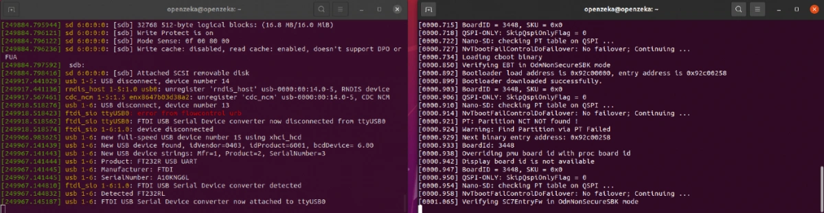 8. Now it’s time to power on your Jetson board. Once you connect the power, you will start to see messages appearing in Minicom.